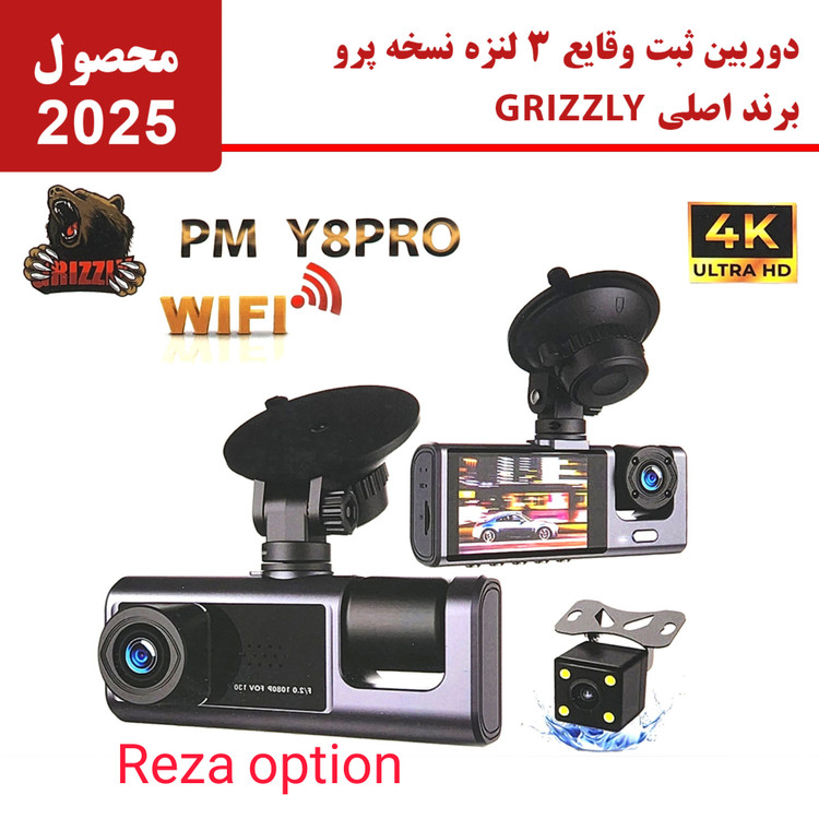 دوربین ثبت وقایع 3 لنزه خودرو وایفای دار مدل GRIZZLY PM-Y8PRO (نسخه پرو)